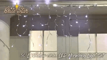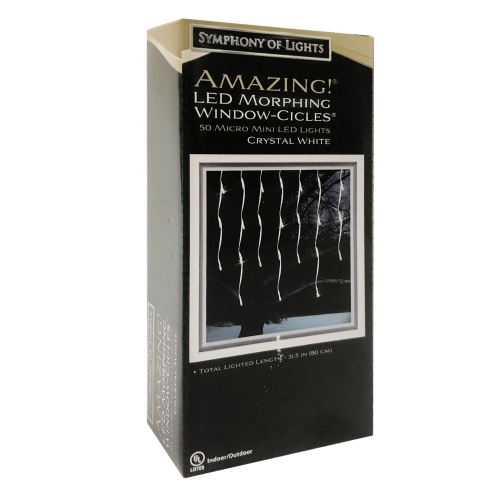 50 Lt WINDOW-CICLES LED MORPHING LIGHT SET, PURE WHITE, TRANSPARENT WIRE, 24" x 3. 5" DROP SP x 4" BULB SP x 2. 5" LIGHT SEQUENCE: 5456545646 TOTAL LIGHTED LENGTH APPROX 31. 5" MAX CONNECT: 36 SETS, SET WATTAGE: 6 W, UL LISTED, INDOOR/OUTDOOR AND 3 SUCTION CUPS