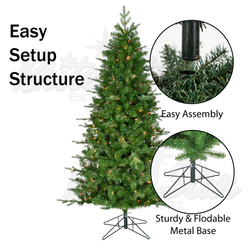 6.5ft tree with 990 tips, 45in diameter, metal stand